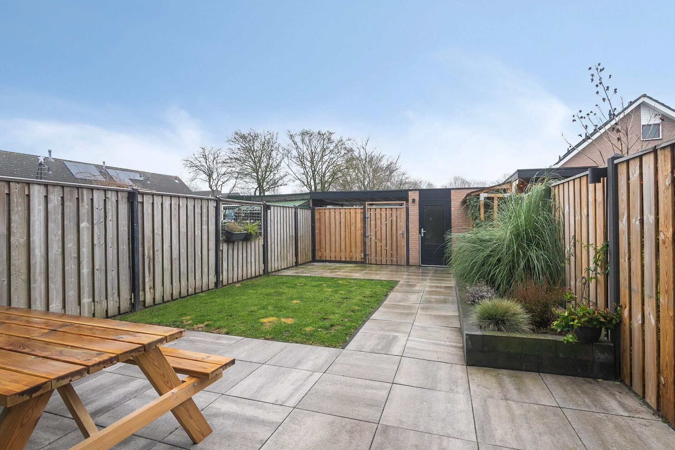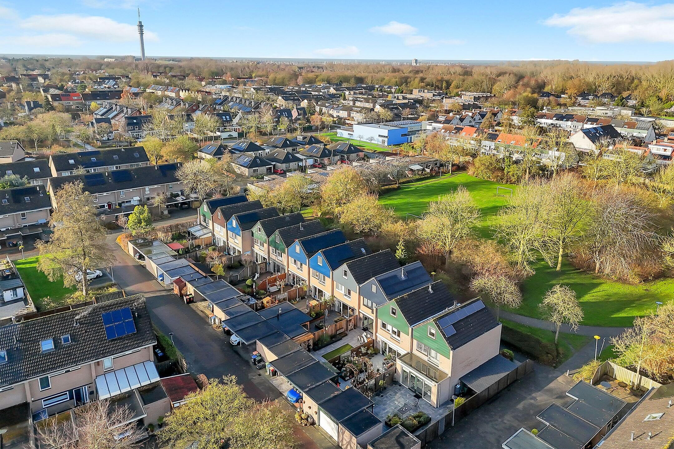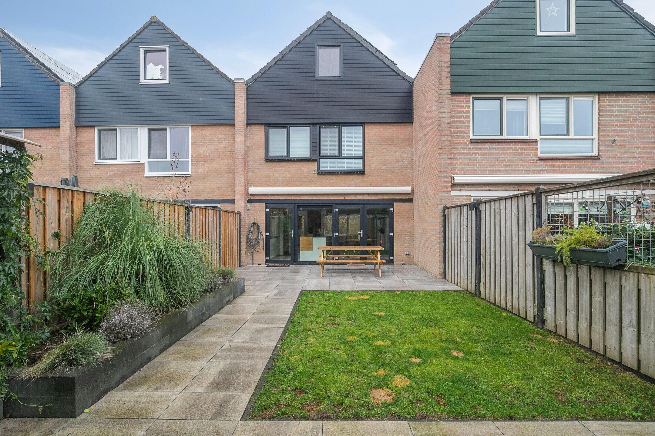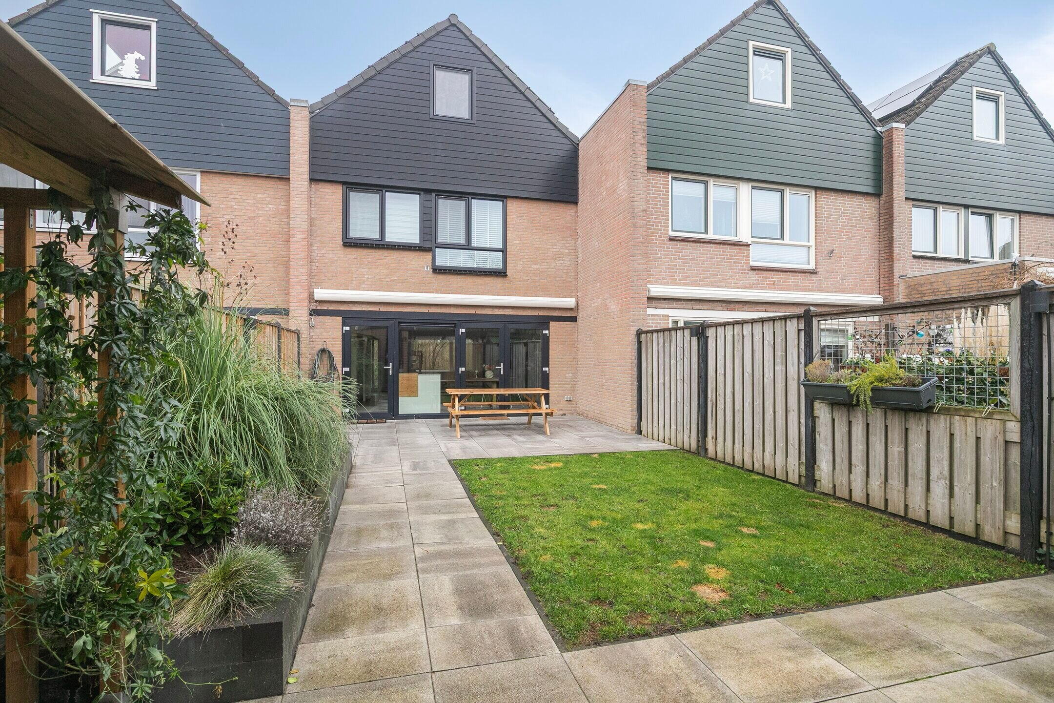 Voortuin grenzend aan fietspad en park. Entree, garderobe, meterkast (glasvezel aanwezig), toilet met hangcloset en fonteintje, open trap naar de eerste verdieping, doorgang naar de fraaie living welke aan de voorzijde van de woning is gesitueerd met uitzicht op groen en voorzien van een knusse, draaibare houtkachel. De moderne tuingerichte leefkeuken is voorzien van een kookeiland, Bora inductiekookplaat, koelkast, aparte vriezer, vaatwasser, Quooker kraan, combi-oven en veel lades en kastruimte. Middels 3 openslaande deuren bereikt u de op het zuiden gelegen tuin. De zeer nette tuin is voorzien van berging en achterom en biedt u volop privacy. Achter de tuin bevindt zich de carport waar u uw auto kunt parkeren.