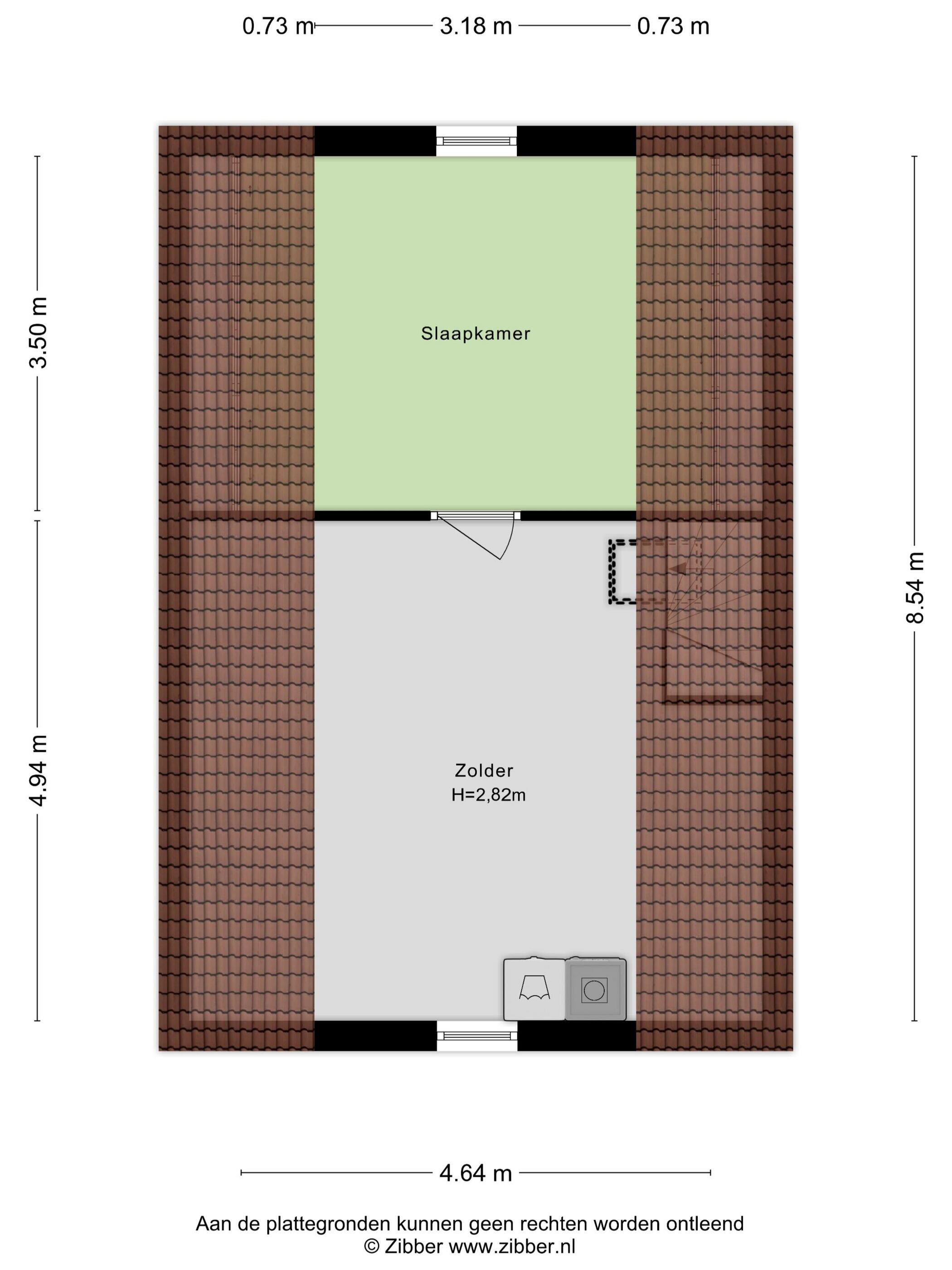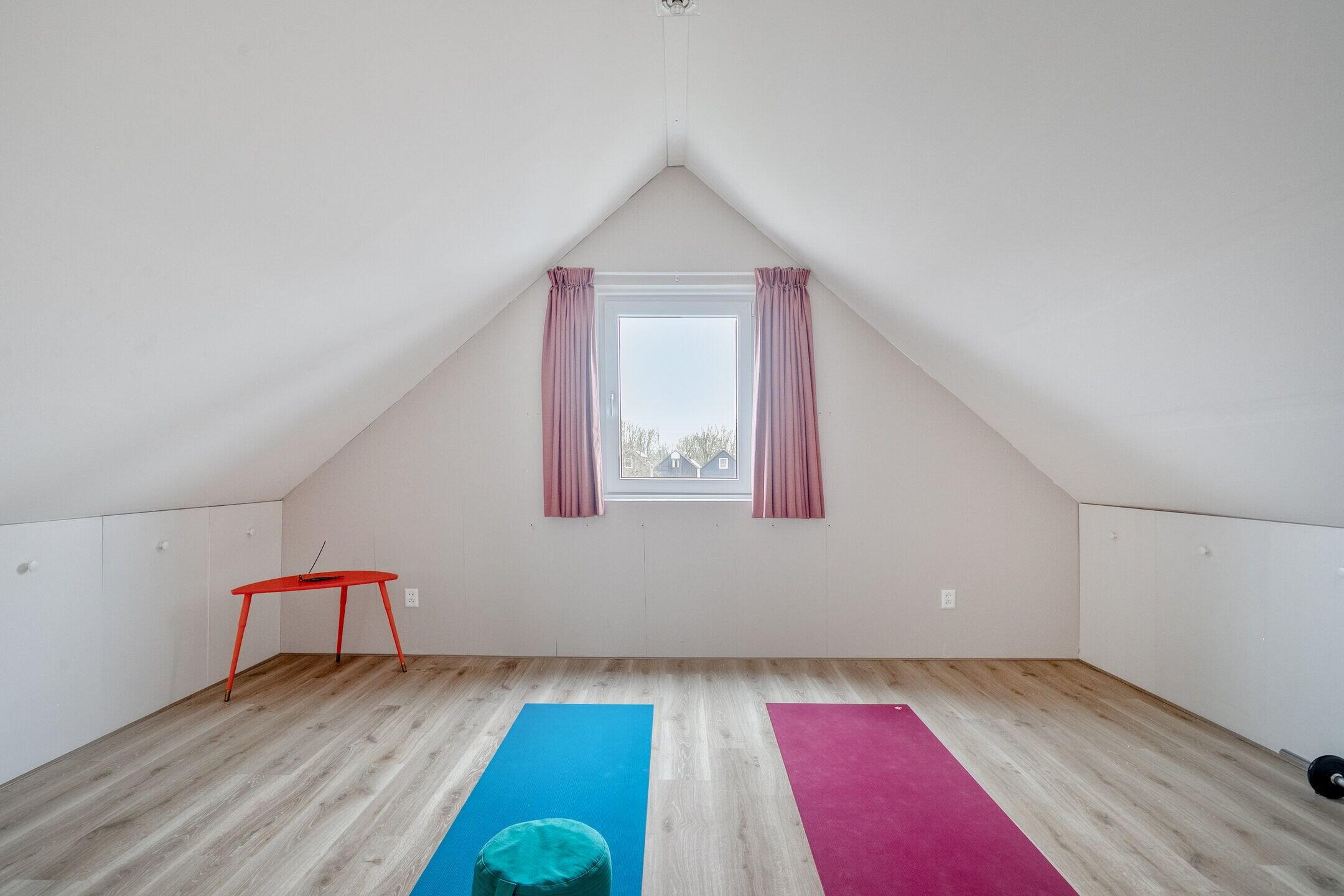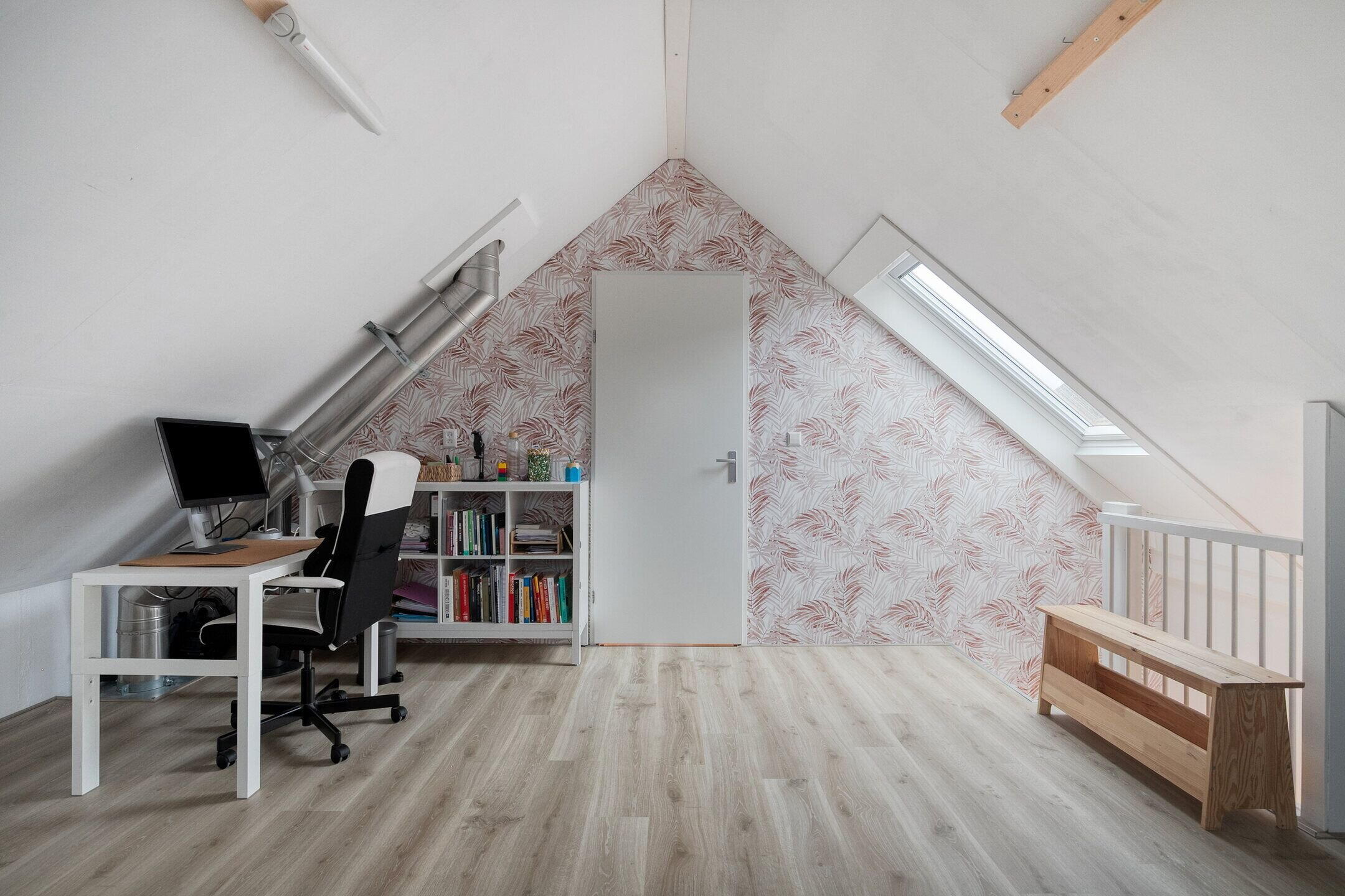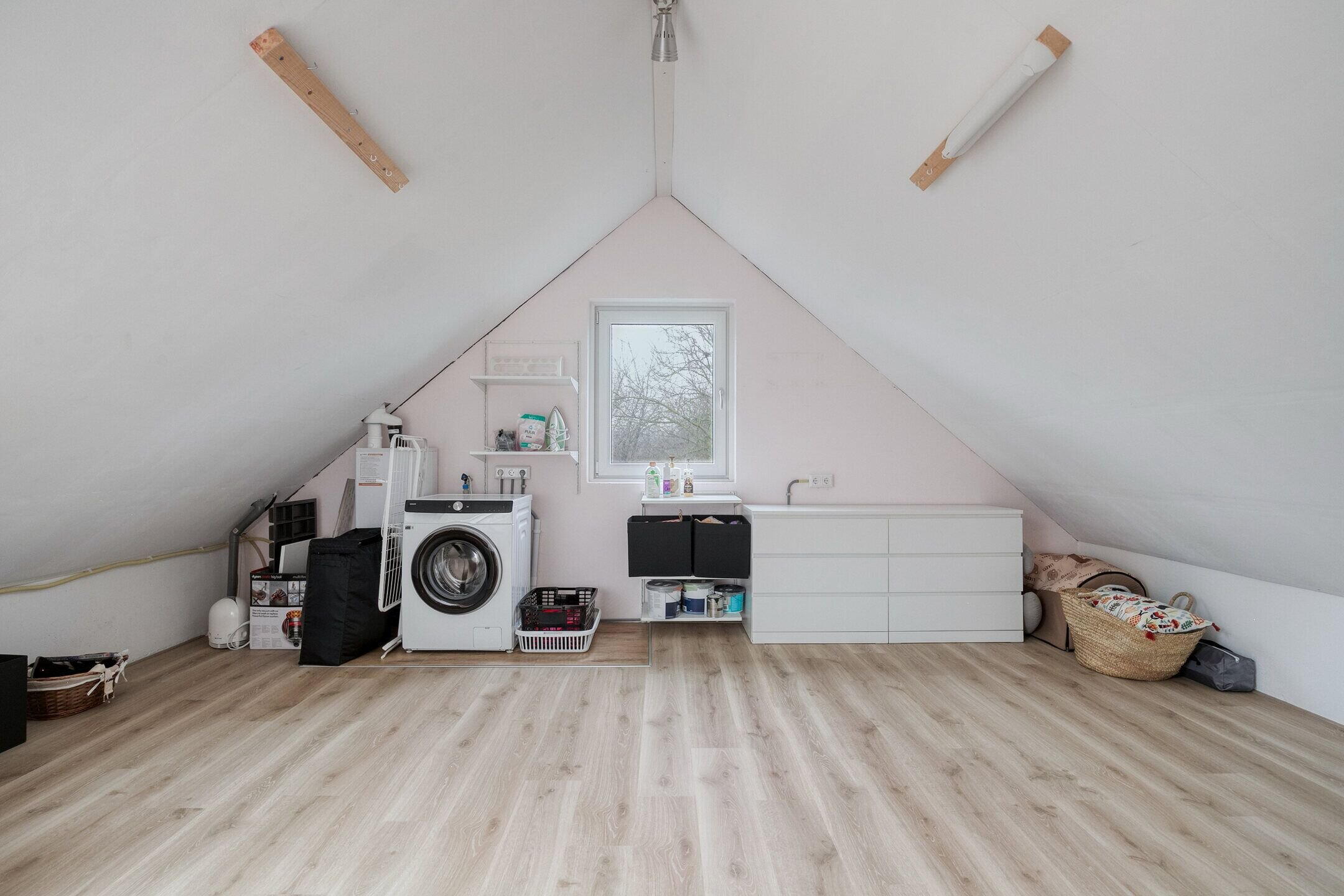 Via de opentrap bereikt u de tweede verdieping met een ruime zolder voorzien van wasmachine- en drogeraansluiting, mechanische ventilatie, cv-ketel (Intergas HRE), dakraam en doorgang naar de ruime derde slaapkamer, welke voorzien is van knieschotten.